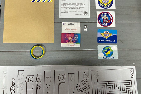 Jemand hat uns viele Umschläge mit Ausmalbildern und Sticker geschenkt, die wir an Kinder verteilen können. Wir möchten die Umschläge aber nicht einfach verteilen, sondern uns auch Zeit für sie nehmen.