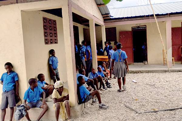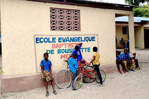 Bousquet hat etwa 3'000 Einwohner. Neben der kleinen Schule der Baptistenkirche gibt es keine funktionierende Schule im Dorf. Manche Kinder laufen täglich über eine Stunde zu Fuss in das Nachbardorf Port-à-Piment, um dort zur Schule zu gehen. Doch nicht alle schaffen das. Die Schule in Bousquet ist deshalb besonders wichtig. Da den Lehrpersonen keinen Lohn ausbezahlt werden konnte, fand der Unterricht nur unregelmässig statt. Sie mussten für ihren Lebensunterhalt selber sorgen – durch Fischerei oder Landwirtschaft. Auch für Schulmaterialien fehlte das Geld.