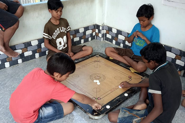 Die Kinder spielen gerne draussen Kricket, Fussball oder andere Spiele. Aber auch drinnen haben wir viele Möglichkeiten wie z.B. Ludo, Carom usw. Wir legen viel Wert drauf, dass die Kinder auch körperlich fit sind.