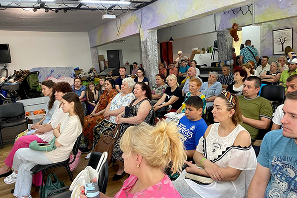 Ich möchte euch noch von unserer Kirche erzählen. Wir sind eine kleine Gemeinde, jeder kennt jeden. Seit der Krieg begonnen hat, sind viele neue Leute dazugekommen, oft ältere Leute. Wir sind sehr offen für Menschen die neu kommen. Nach dem Gottesdienst gibt es Tee und wir haben Zeit, Gemeinschaft zu pflegen. Am Sonntag verteilen wir auch keine Hilfsgüter, weil wir nicht möchten, dass die Leute nur in den Gottesdienst kommen, weil sie anschliessend ein Lebensmittelpaket bekommen.